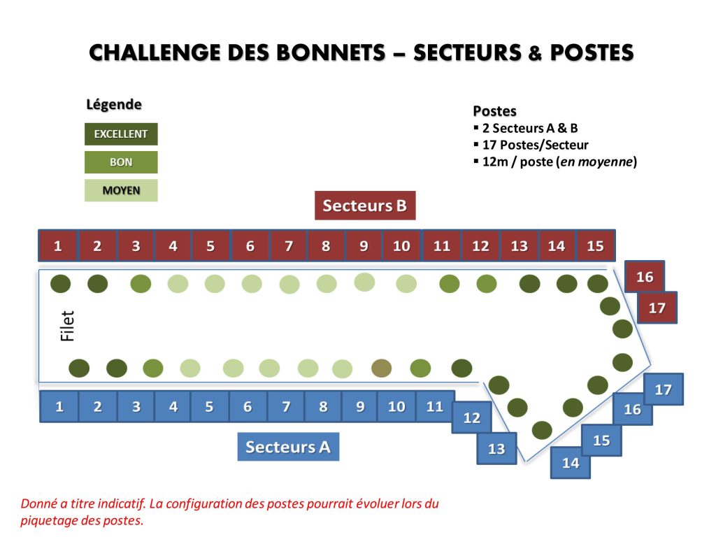 Répartition des poissons par secteur à titre indicatif, relevé lors d’un championnat.