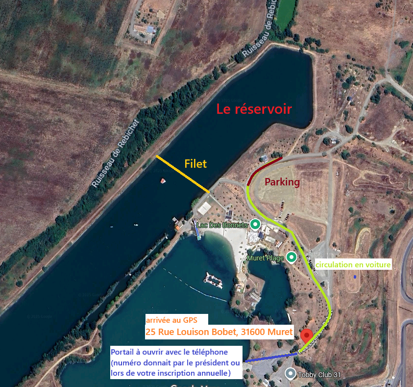 Accès au lac : le site des Bonnets est sécurisé par une barrière à l’entrée. Les droits d’accès sont donnés aux adhérents de la saison en cours.